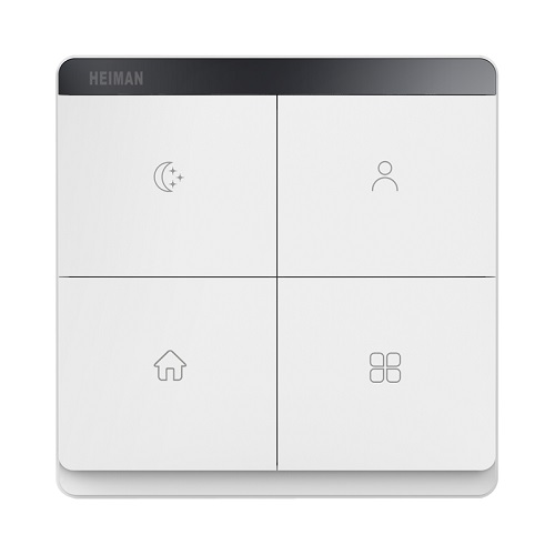 Allows quick activation of 4 pre-programmed scenes (main home mode, sleeping mode, entertainment mode, leaving mode).